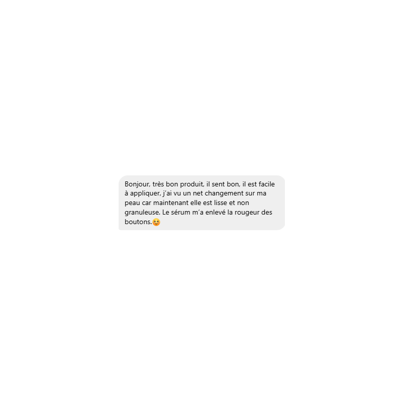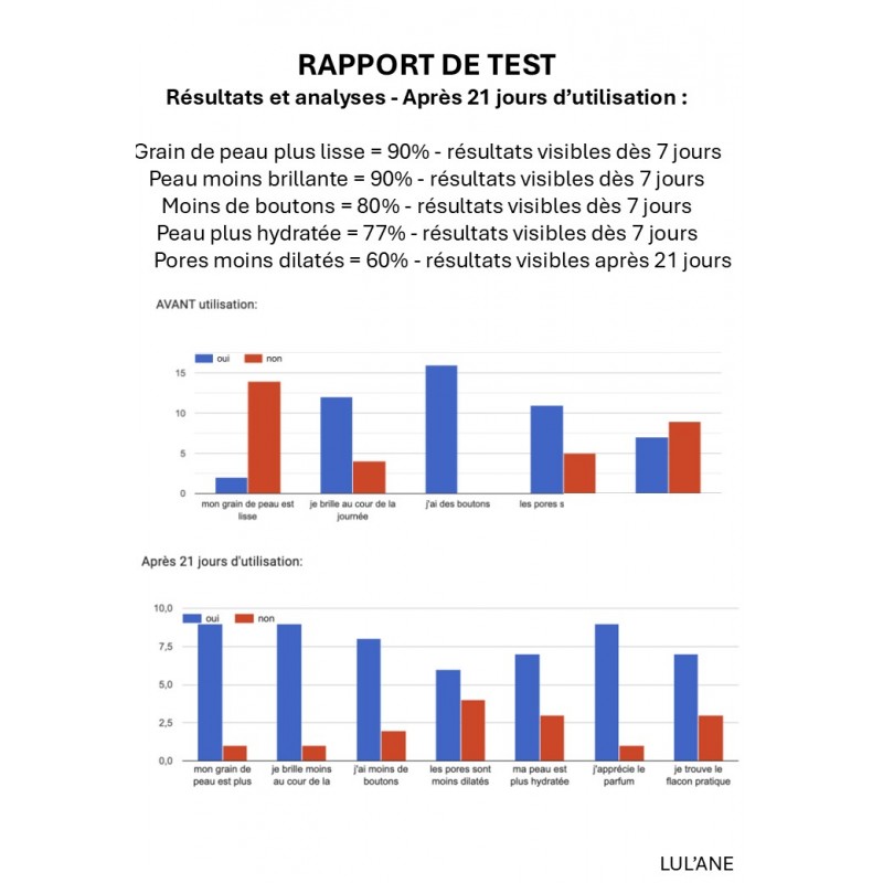 INGREDIENTS : AQUA, DONKEY MILK, COCO-CAPRYLATE/CAPRATE, GLYCERIN, SILICA, Polyacrylate-13, HydrogenatedPolyisobutene, Polyglyceryl-10 Laurate, NIGELLA SATIVA SEED OIL, NIGELLA SATIVA SEED OIL, Citrus Aurantium Dulcis Peel Oil , Hydrolyzed Algin (extrait d'algueLaminaria Digitata) (and) Zinc sulfate, TOCOPHEROL, Benzyl alcohol, Dehydroacetic acid, NIACINAMIDE, HYALURONATE ACID, AHA : (Vacciniummyrtillus fruit extract (extrait de myrtille: 27-30%) & Saccharum officinarumextract (extrait de canne à sucre : 11-13%) & Citrus aurantium dulcis fruitextract (extrait d'orange : 3-5%) & Citruslimon fruit extract (extrait de citron : 3-5%) & Acer saccharum extract (extrait d'érable : 1-2%)), SALICYLIQUE ACID, Sodium Ascorbyl Phosphate, Melaleuca alternifolia leaf oil, Arctium lappa root extract, maltodextrin, ALOE VERA EXTRACT